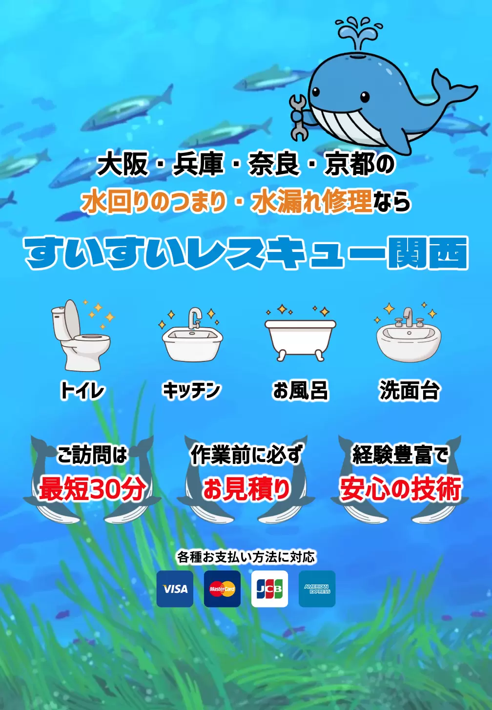 大阪・兵庫・奈良・京都の水回りのつまり・水漏れ修理なら